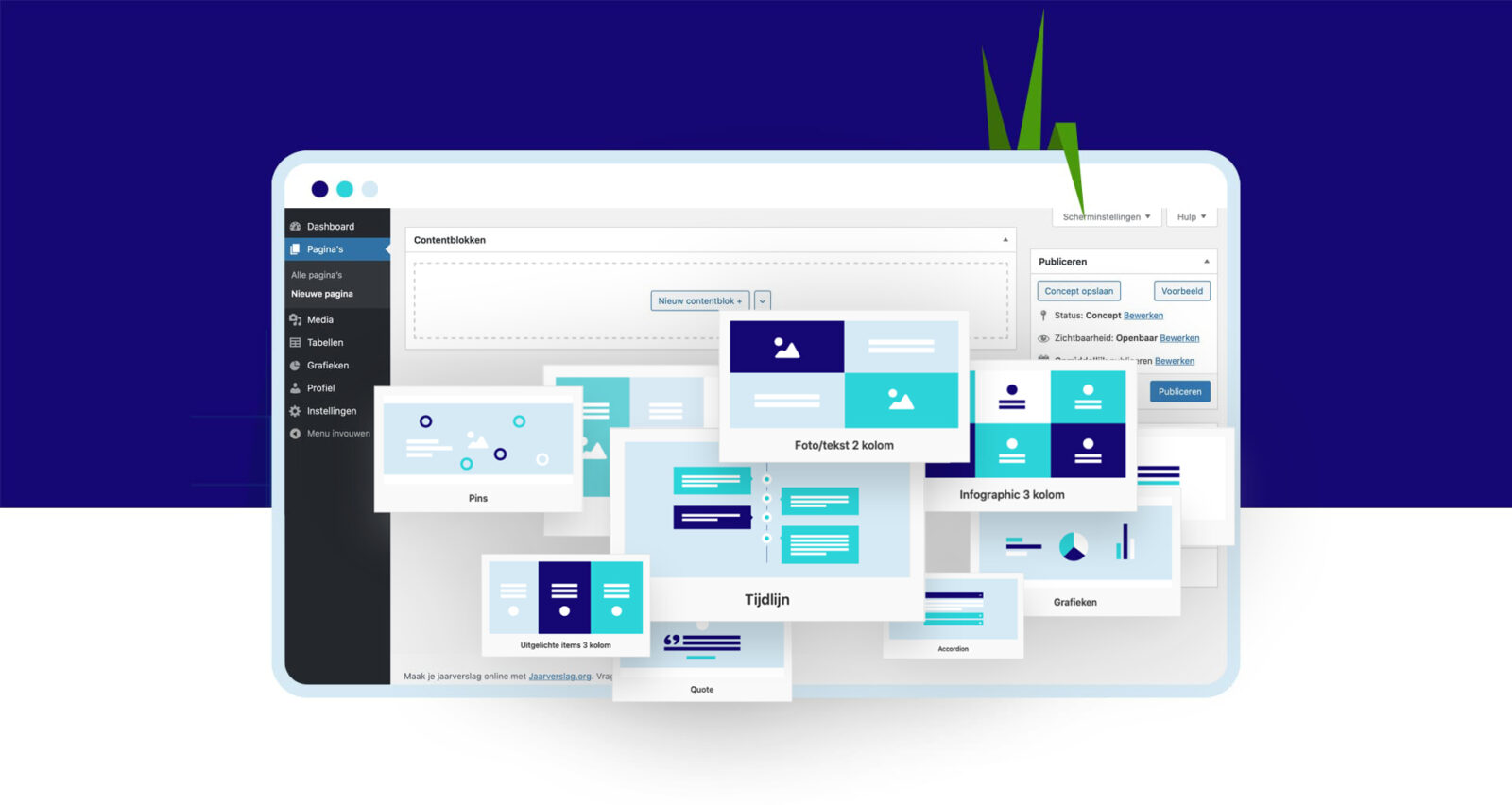Vervolgens kun je aan de slag door gebruik te maken van onze ruime keuze aan contentblokken.