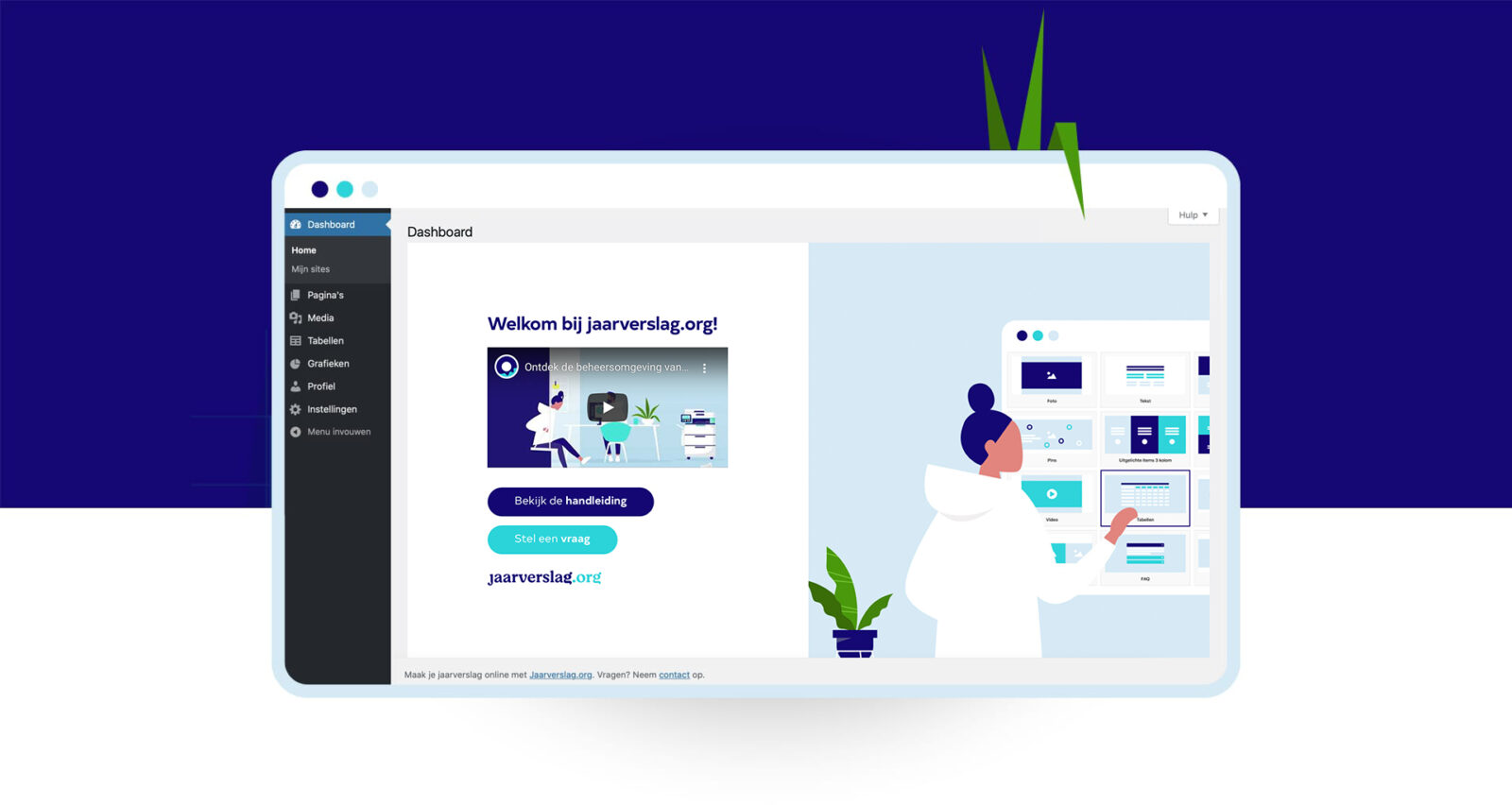 Vul je publicatie: Maak of importeer tabellen, maak grafieken en vul je pagina’s aan de hand van een ruime keuze aan contentblokken. Geef je financiële afdeling, accountant of communicatie collega’s toegang tot hun relevante onderdeel via het tabblad ‘Gebruikers‘.